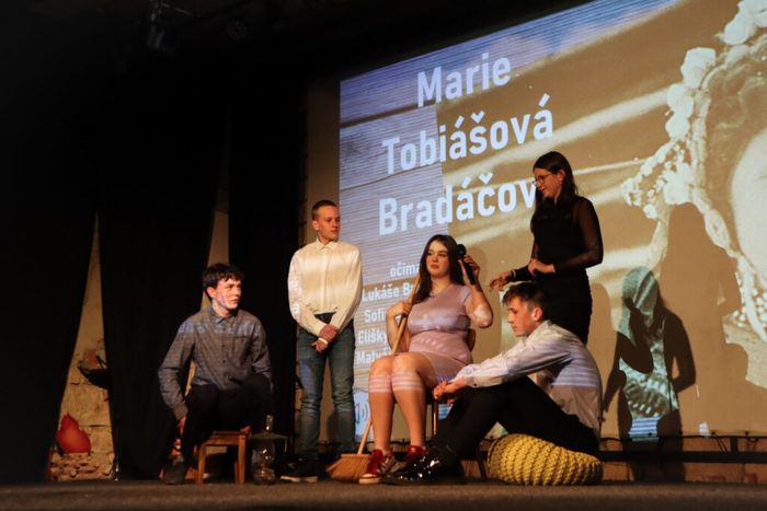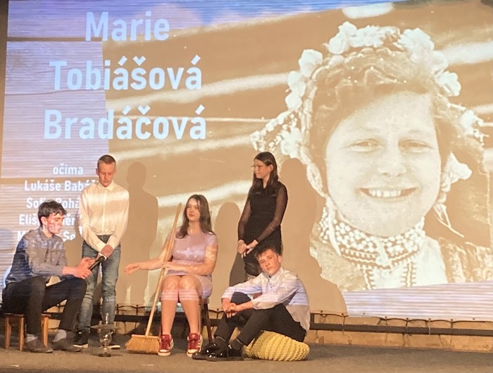 Do tohoto projektu jsme se jako škola rozhodli připojit již na jaře minulého roku, kdy jsme byli osloveni organizací Post Bellum. Od září tohoto školního roku začala pracovat pětičlenná skupina žáků z 8. a 9. ročníku pod vedením p. učitelky Jitky Šafrové (paní uč. Šafrová na naší škole vyučuje dějepis, výchovu k občanství a také pracovní či výtvarnou výchovu). Z žáků se do projektu zapojili jmenovitě Lukáš Babáček, Sofie Boháčová, Eliška Lněničková, Matyáš Sedlák a Jakub Šafr. Naši žáci přiblížili ve své prezentaci život paní Marie Bradáčové (rozené Tobiášové) pocházející ze Sedlišť u Jimramova. Základem projektu byly rozhovory s paní Bradáčovou a jejich následné zpracování, které mělo výsledný výstup v grafické podobě jako komiks z vybraných kapitol života paní Bradáčové. Záznam z prezentace můžete shlédnout v přiloženém videu.